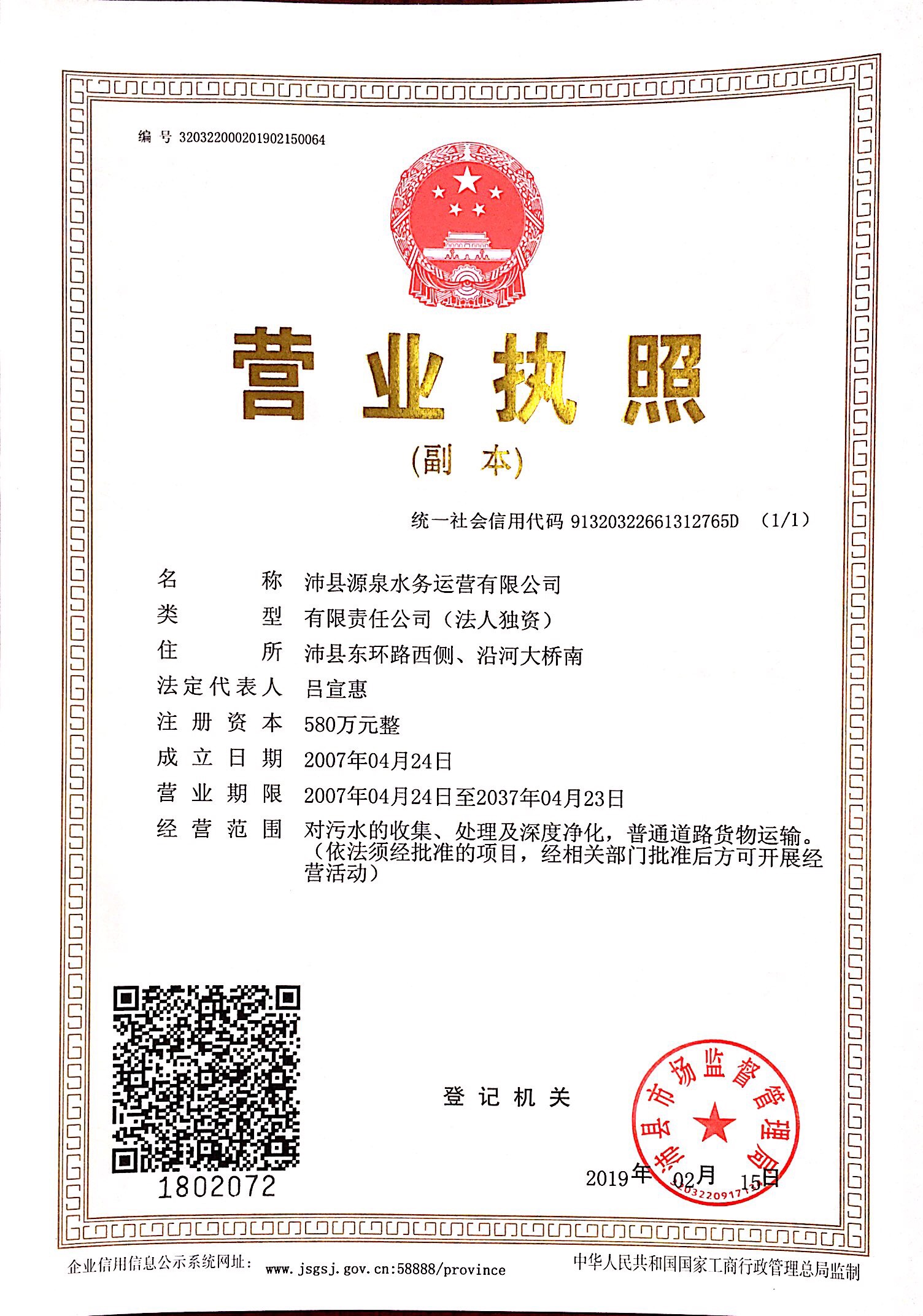 5、沛縣水利局安排人員24小時(shí)駐守我廠(chǎng),對我廠(chǎng)進(jìn)水水量實(shí)施全天候監管。水利局已在我廠(chǎng)進(jìn)水口完成了進(jìn)水流量計的安裝,用于我廠(chǎng)處理水量的監管。
